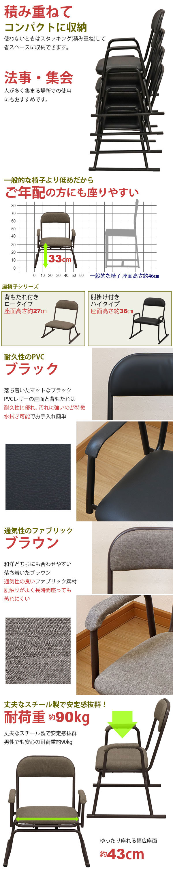商品名:座椅子 高座椅子 回転式 座敷椅子 楽座椅子(3脚セット)積み重ね可能 座敷 椅子 畳み椅子 仏壇椅子 座いす 座面 低い 座イス 幅56cm 奥行50cm 高さ64cm 座面高さ33cm 集会所 お寺(法要 法事 本堂 和室 和式) シンプル 高齢者 イス スタッキングチェア ブラック ブラウン完成品