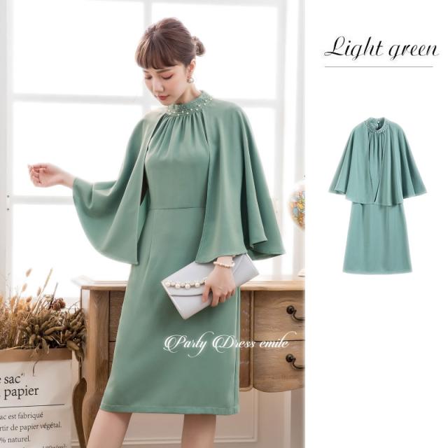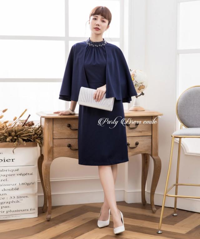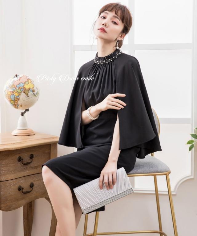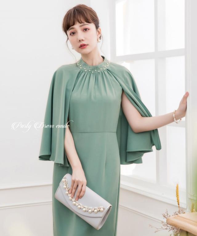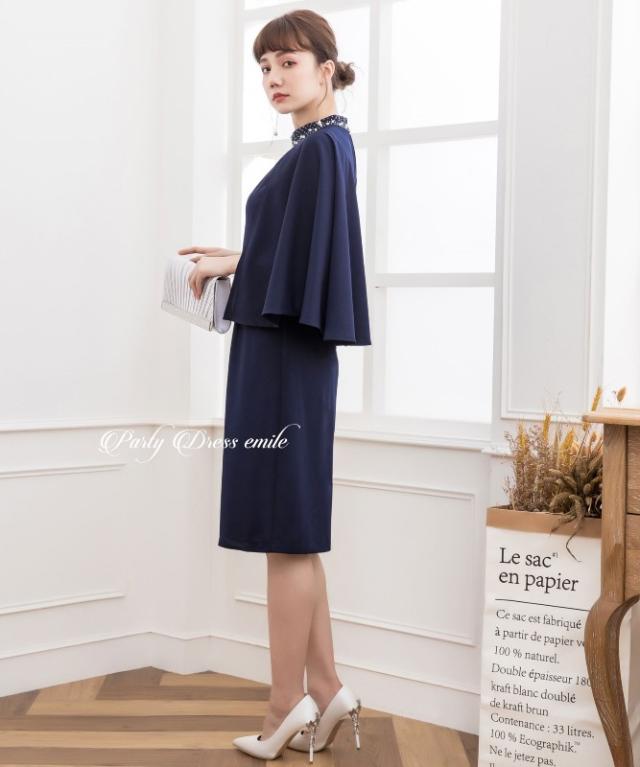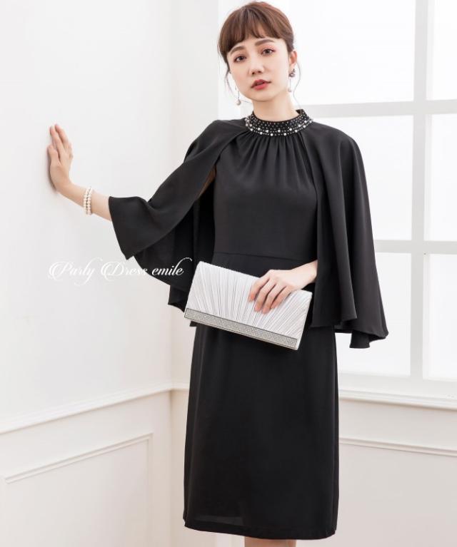 羽織り要らずで二の腕カバーが叶うケープ風ワンピースドレス