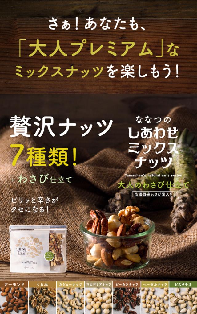 ななつのしあわせミックスナッツ わさび(250g) 【送料無料】7種 素焼き ナッツ 小分け 小袋 おつまみ おやつ 健康 食品 美容 ダイエット ブレンドナッツ ミックスナッツ 家飲み 保存食 人気 おすすめ わさび 家飲み