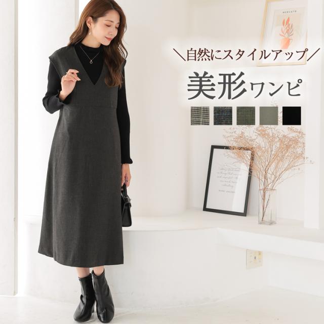 ノースリーブ ワンピース ロング レディース チェック ロングワンピース ジャンパースカート フレアワンピース 冬ワンピース かわいい きれいめ カジュアル 秋 冬 ワンピ ゆったり vネック ミモレ丈 膝丈 aライン フレア 暖かい 大人可愛い 服 上品 重ね着 ジャンバースカート