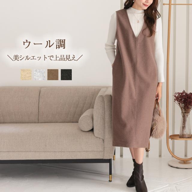 ノースリーブ ワンピース ロング レディース ロングワンピース ジャンパースカート 冬ワンピース かわいい きれいめ カジュアル 秋 冬 ワンピ ゆったり vネック ミモレ丈 膝丈 aライン 暖かい ウール 調 大人可愛い 服 上品 重ね着 ジャンバースカート