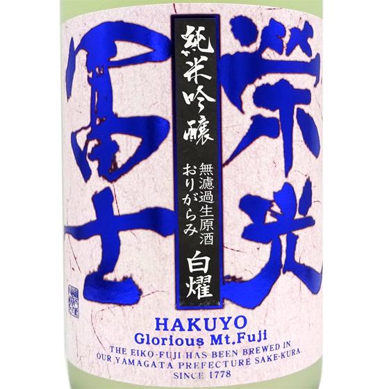 栄光冨士 白燿 はくよう 純米吟醸 おりがらみ 無濾過生原酒 1800ml しぼりたて 山形県 冨士酒造 クール便 日本酒 お歳暮 誕生日 お祝い ギフト レビューキャンペーン
