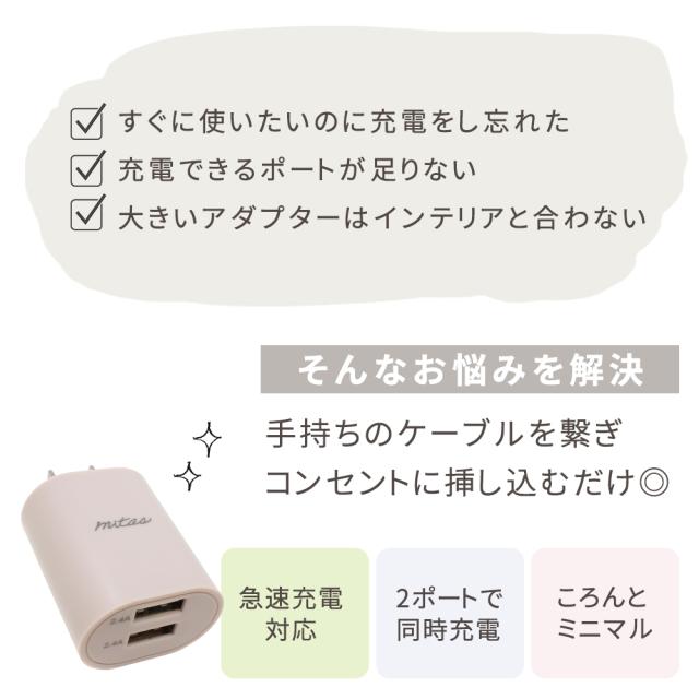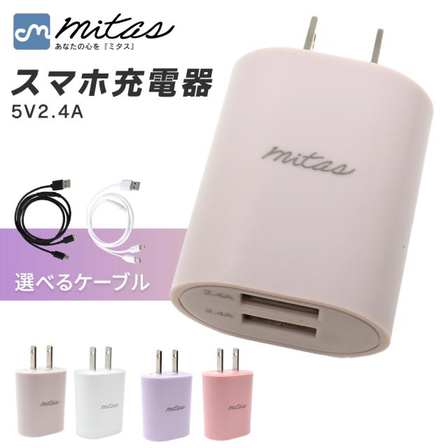 選べるケーブル付き! 充電器アダプター usb充電器 2ポート 充電器 タイプC タイプC充電器 スマホ充電器 ACアダプター Type-C android iphpne ケーブル au 携帯充電器 急速充電器 携帯電話 最大2.4A コンセント アンドロイド 急速充電アダプター 充電機 ポイント消化 mitas
