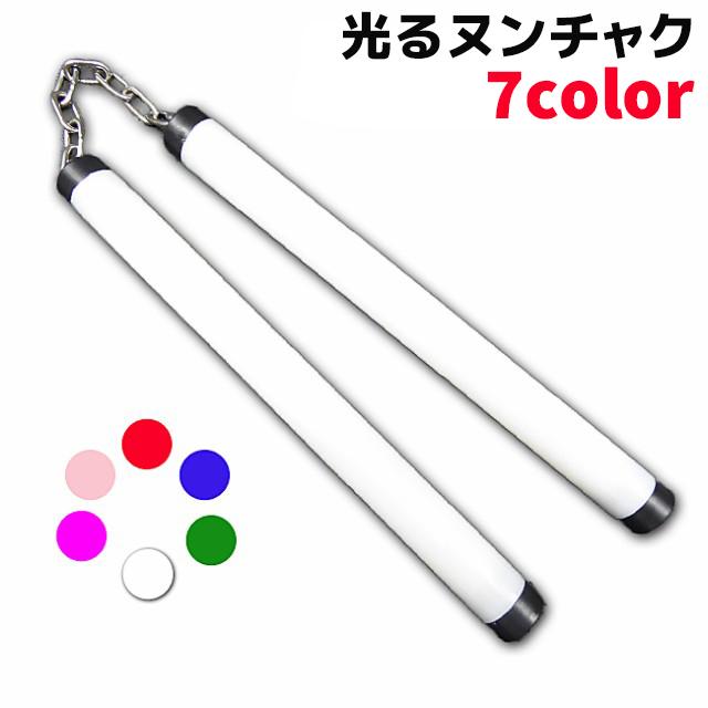 光る ヌンチャク 7色 SHPLNUM01 レッド グリーン ブルー ピンク パープル ホワイト カラフル 護身 セキュリティ 防犯 防護 ライト スポーツ おもちゃ ぬんちゃく 本物 練習用 練習 ブルースリー 威力 空手 ポイント消化 クリスマス ギフト
