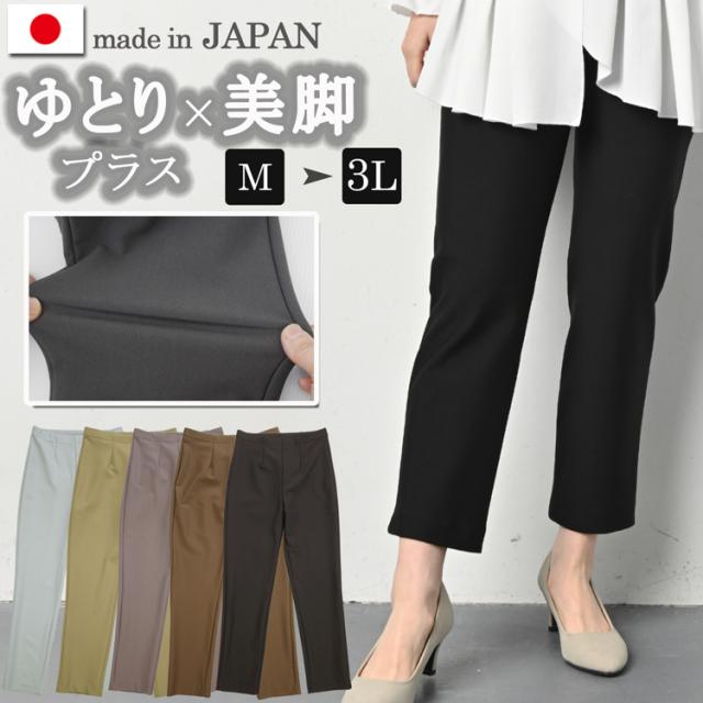 ・レギンスやスキニーよりもヒップ、太もも、足首にゆとりをプラスしたレギンスに代わる新しい脚長パンツ。体型を拾いにくいのでミセスファッションとしてもおすすめです