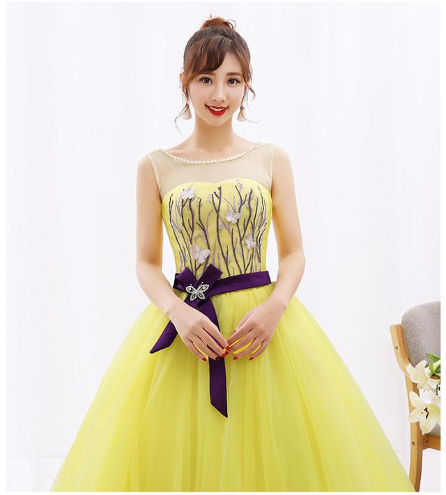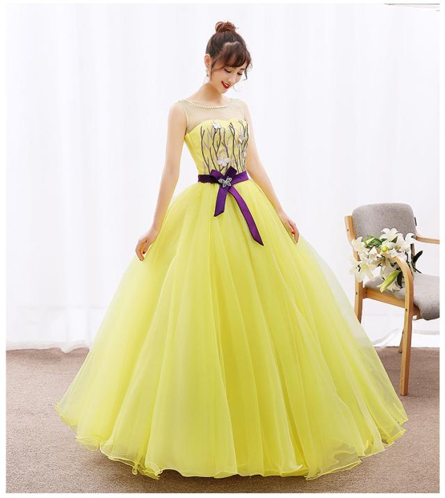 お得 パニエ付 カラードレス ロングドレス パーティドレス ワンピ 黄色 イエロー 結婚式 発表会 演奏会 オーダーサイズ可 D019