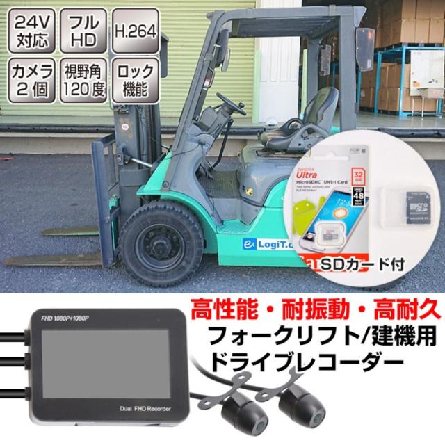 24V対応なのでフォークリフトや建設重機に使えるドライブレコーダーです。