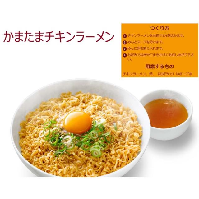 | 油揚げめん(小麦粉、植物油脂、しょうゆ、食塩、チキンエキス、香辛料、糖類、たん白加水分解物、卵粉、デキストリン、香味調味料、オニオンパウダー)/加工でん粉、調味料(アミノ酸等)、炭酸Ca、かんすい、酸化防止剤(ビタミンE)、ビタミンB2、ビタミンB1、(一部に小麦・卵・乳成分・ごま・大豆・鶏肉を含む) |