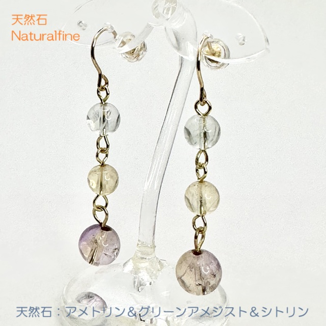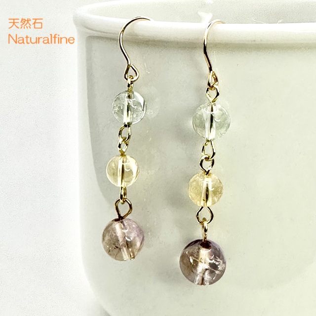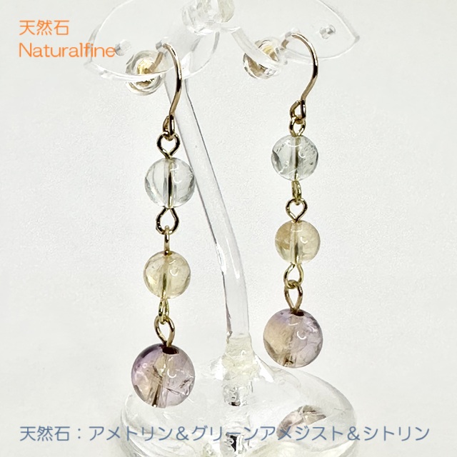 天然石アメトリンとシトリン、グリーンアメジストのピアス(イヤリング)です。