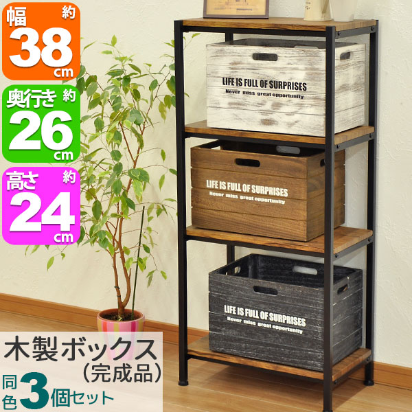 カラーボックス インナーボックス 3個セット『木製ボックス 桐製』幅38cm奥行き26cm高さ24cm おしゃれなアンティーク調桐ボックス (HZKB)