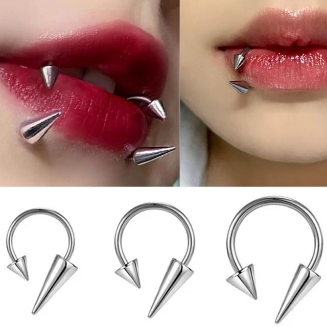 [16G ボディピアス] スパイクコーン リップフープ サーキュラーバーベル 1個 16g 16ゲージ ボディーピアス メンズ レディース スクランパー ヘリックス 軟骨 ステンレス トラガス セプタム コンク リップリング 口ピアス 牙ピアス くちピアス クチピアス 鼻 ノーズ パンク