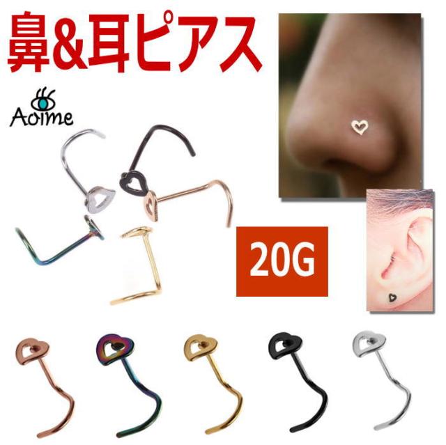 ハート 鼻ピアス 20G ボディピアス ノーズピアス アレルギーフリー ノーズ スクリュー ハナピ 鼻ピ bp1059-