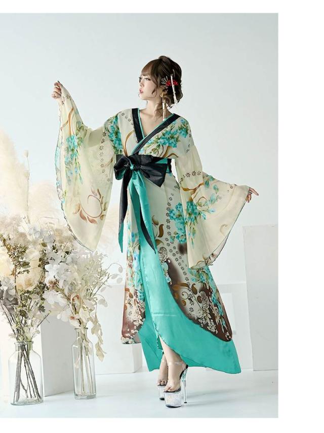 ☆癒し度大なグラデーション花柄着物ドレスはキャバクライベントなどコスプレ衣装としてもバッチリな振袖ロングドレス。