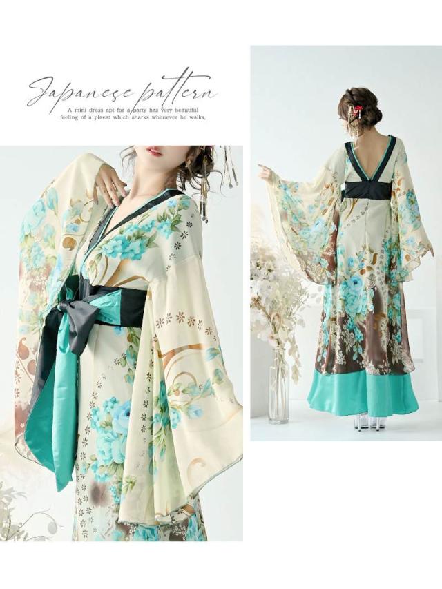 花魁 コスプレ 花魁コスプレ 衣装 着物ドレス 着物 和柄ドレス 和柄 ハロウィン 和装 キャバ ドレス キャバドレス 流遊 花
