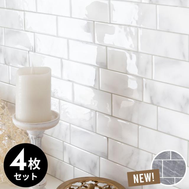 タイル シール サブウェイ モザイク 4枚 大理石風 シート 防水 ウォール 水回り ステッカー デコレーション リメイク 壁材 メール便対応 66919-4-