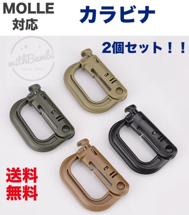 カラビナ MOLLE/PALS モールシステム対応 OLIVE 2個セット ミリタリー ベルトループ サバゲー スト