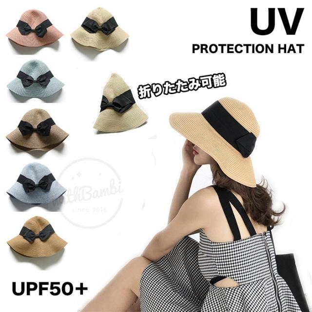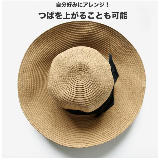 帽子 夏 レディース uvカット キャペリン 麦わら 大人かわいい 折りたたみ つば広 中折れ帽 ハ