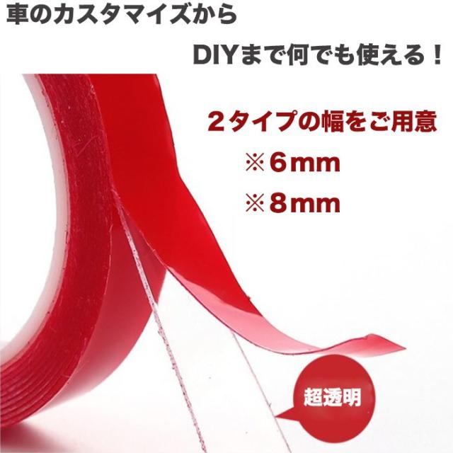 強力 両面テープ 透明 ドアバイザー 強力両面テープ クリア DIY 6mm 8mm テープ 車用テープ
