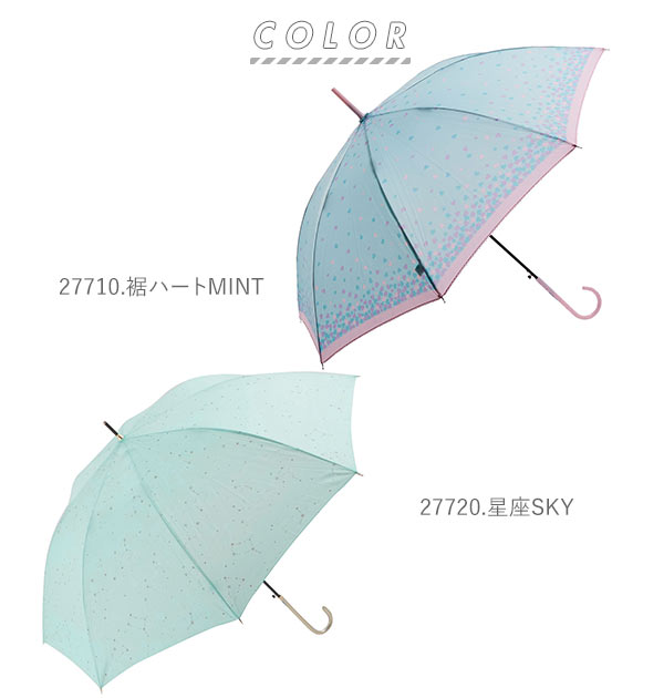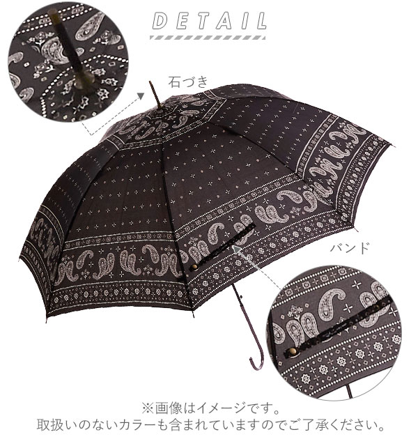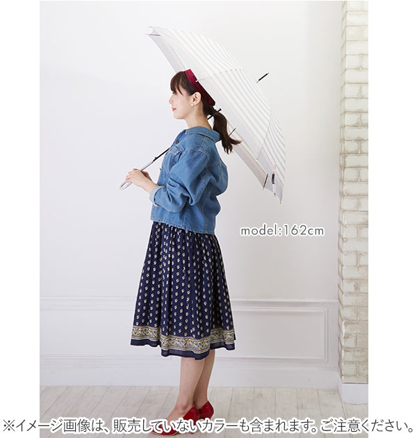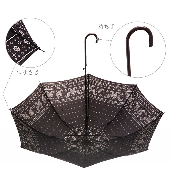 | 注意点 | ※カメラやモニターの性質により、画像と実物の色の違いがある場合がございますのでご理解願います。 [傘の使用時の注意書き] ※強風の時は、本製品が破損する恐れがありますので使用しないで下さい。 ※本製品は、自転車・ベビーカーなどの固定する器具に取り付けて使用する構造になっておりません。視野の妨げ、事故・破損の原因となる恐れがありますので、絶対に取り付けないで下さい。 ※本製品は、構造上、骨同士が狭くなっているので、骨に挟まれたり怪我をする恐れがありますので、手や指を入れないで下さい。 ※ハンドクリームや日焼け止めクリーム等が、本製品の生地・手元等の色落ちの原因になる場合があります。 ※ご使用後は、本製品を陰干しにして乾いてからおしまい下さい。濡れたまま保管しますと、錆の発生や生地の色移りの原因となる場合があります。 |
