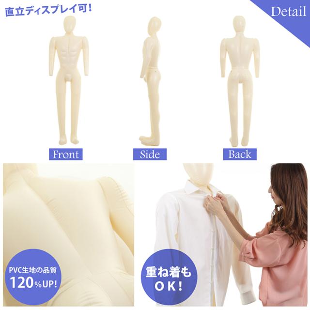 エアーマネキン ビニール ボディー トルソー 全身 上半身 ハンガー 洋裁トルソー メンス 男性 肌色 取説付 (肌色全身腕脚付)