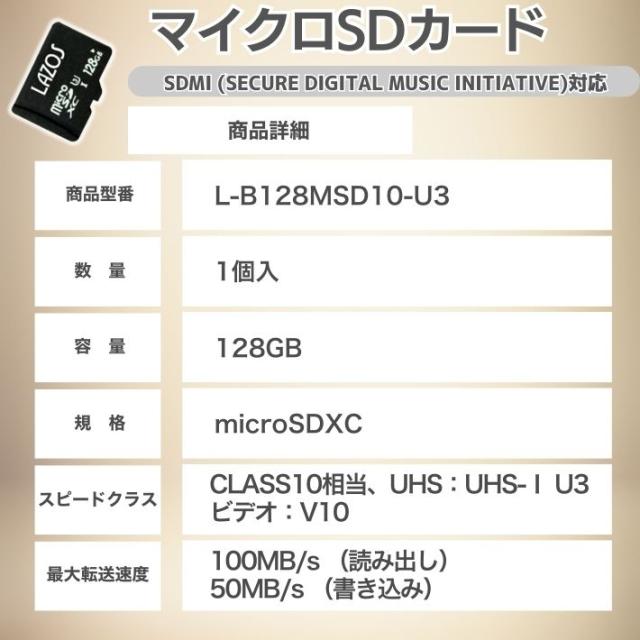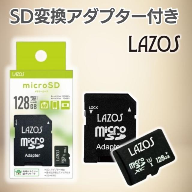 microSDカード マイクロSD microSDXC 128GB L-B128MSD10-U3 Class10 アダプター付 ギャラクシ エクスペリア ファーウェイ シャープ アンドロイド スマートフォン スマホ 対応 ドライブレコーダー 録画Lazos microSDXCメモリーカード L-128MS10-U3 CLASS10