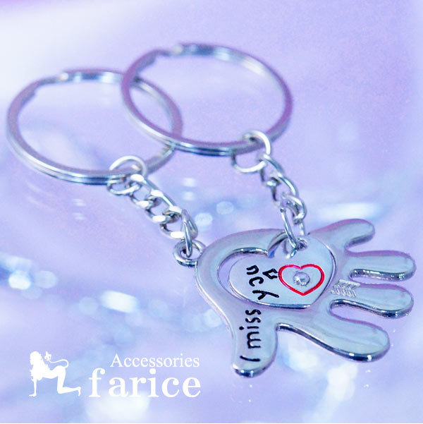 ハートを射止めたキューピッドアロー ハート&手デザイン ペアキーホルダー 【二個一組セット売り】