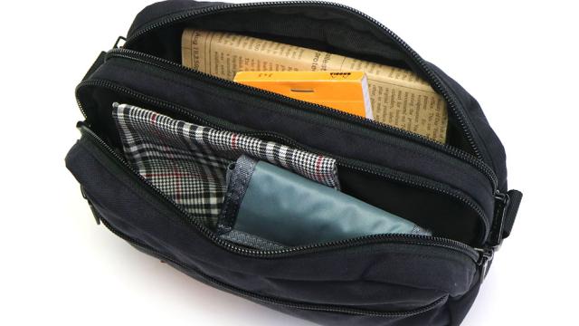 収納部は2室に分かれた2ルーム構造。コンパクトながら荷物の仕分けができる使い勝手の良い設計です。外出の必需品を小さくまとめられるサイズなので、身軽に行動したいシーンで活躍します。