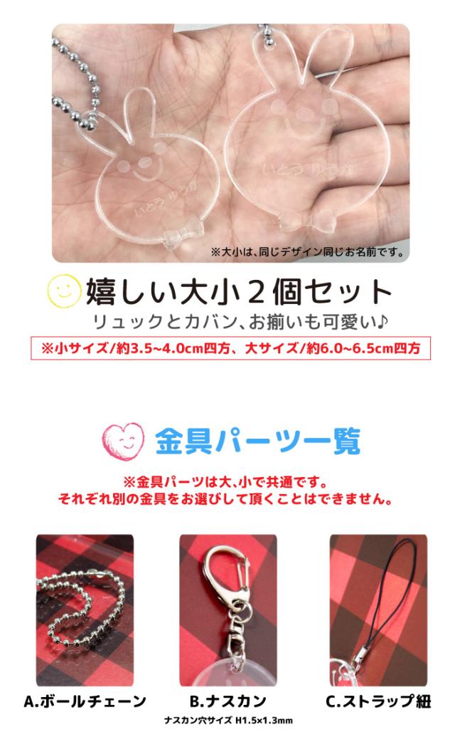 子どもの通学かばんや給食袋、体操服セットなど、まわりとお揃いで揃える教材に付けてあげると失くし物の防止になります!キーホルダーのエッジ部分は全て出荷前に手作業でヤスリ加工を行いますので、ご安心して使っていただけます。クリアカラーで防犯上も良くデザインも飽きない仕様となっております。