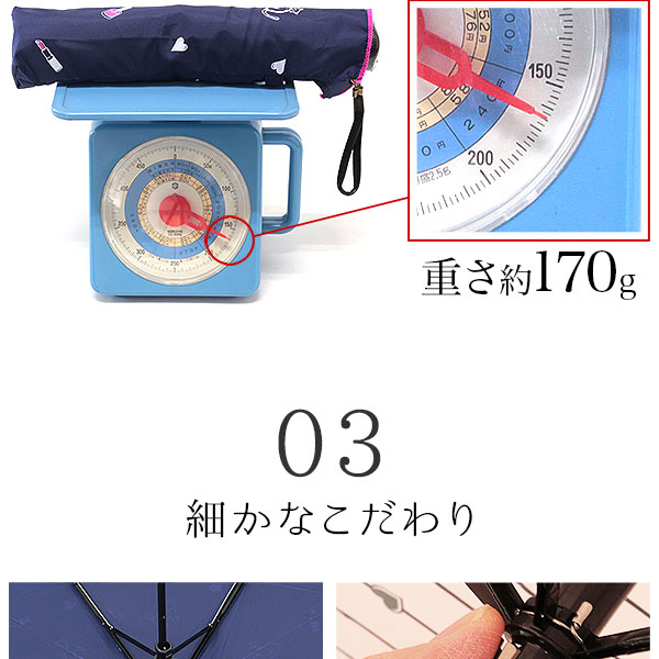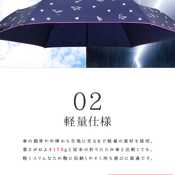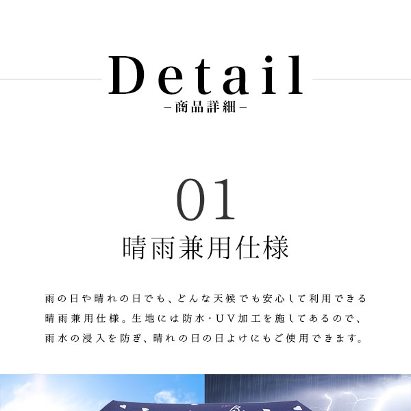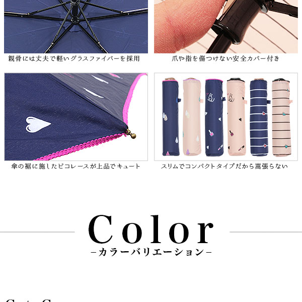 ■軽量かつUV加工を施した生地を使用したレディース傘。軽くて丈夫なグラスファイバーを採用しているので風にも強い。また、雨の日はもちろん、晴れの日の日よけとしてもご利用できます。<