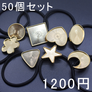 ヘアゴム セッティング土台付き ミックス ゴールド 50個セット ヘアアクセサリー ヘアゴムパーツ メタルパーツ