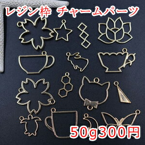 レジン枠 チャームパーツミックス 花 星 月 カップ 動物 幾何学【50g】ゴールド