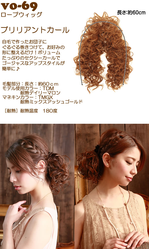 ロープウィッグ ブリリアントカール VO-69 プリシラ ウィッグ つけ毛 ひも状 付け毛 和装 お団子 まとめ髪 ウイッグ お呼ばれ パーティー 二次会 ダンス キャバ 浴衣 着物