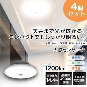 【4個セット】シーリングライト LEDシーリングライト 1200lm ライト LED 小型 コンパクト 薄形 人感センサー SCL12LMS-UU SCL12NMS-UU SCL12DMS-UU アイリスオーヤマ 照明 電気 玄関 トイレ 廊下 工事不要 簡単取付 省エネ 送料無料