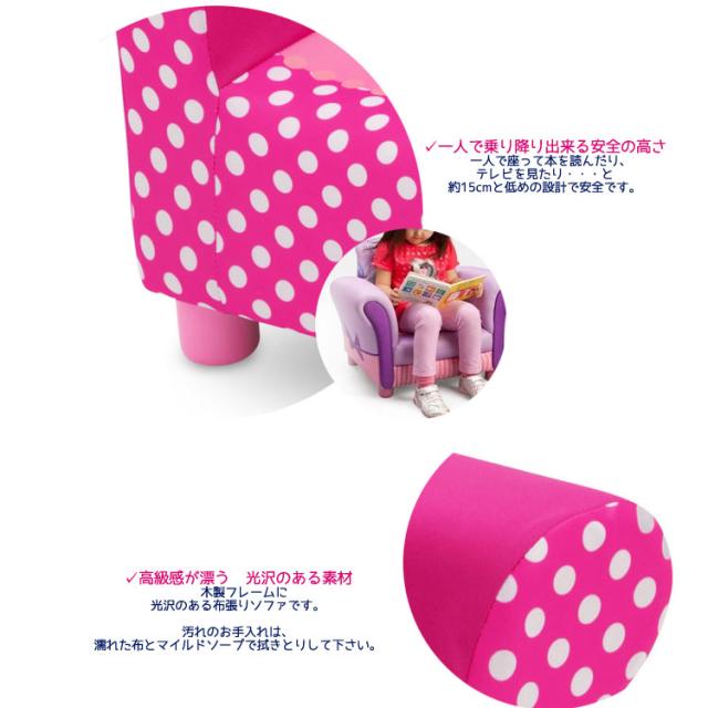 ディズニー ミニーマウス ソファー 子供用 女の子 ピンク ドット 3-6歳 アップホルスタードソファ 椅子 1人用 デルタ Delta