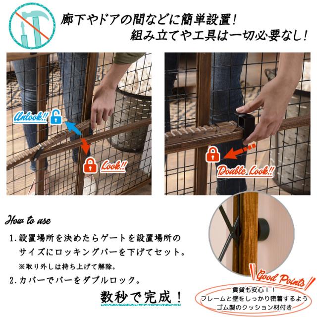 ペットゲート 置くだけ 突っ張り ワイド 簡単設置 軽量 木製