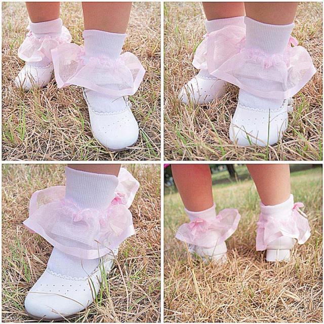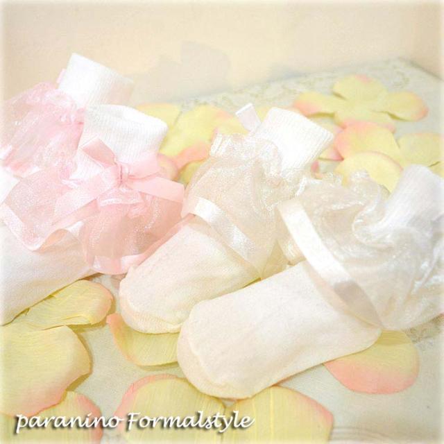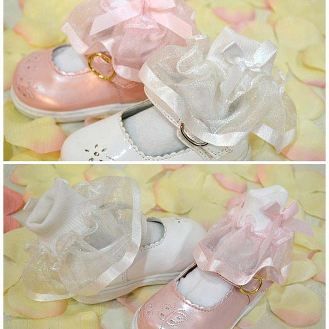 【売切価格】送料無料/ 靴下 リボン付き オーガンジー レース ソックス 女の子 ホワイト ピンク 7-19cm