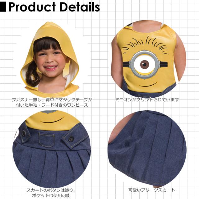 Paranino パラニーニョ アメリカ USA 輸入雑貨 Halloween ハロウィン コスプレ 仮装 変装 衣装 変身 なりきり ごっご遊び 個性的 90cm 100cm 110cm 120cm Rubies 620291 キャラクター ミニオン Minion 映画 ユニバーサル 子供用 キッズ こども 子ども ガール