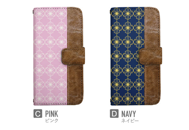本革シボ加工風の生地・縫い目のデザインを印刷したスマホケースになります。