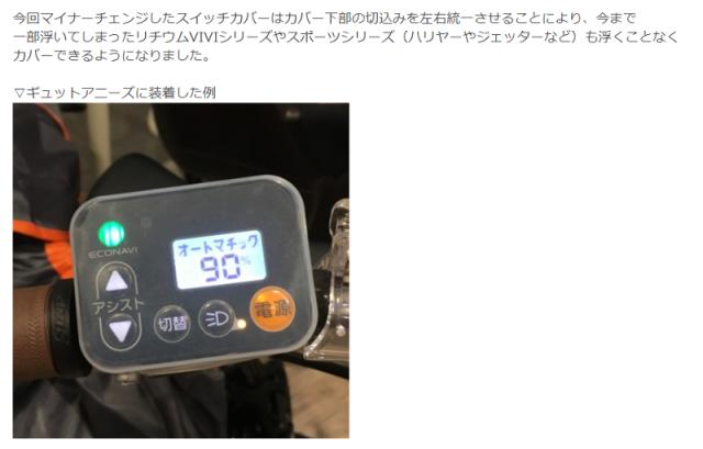それに、うっかりスイッチを押してしまうことを防ぐ役割もあります。例えば、手袋をしているときや走行中に、誤ってアシストのモードを切り替えちゃうことがあるんですが、カバーがあればそんな心配もなくなります。