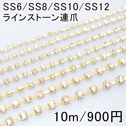 ラインストーン連爪 SS6-SS12 クリスタル/ゴールド(10m)