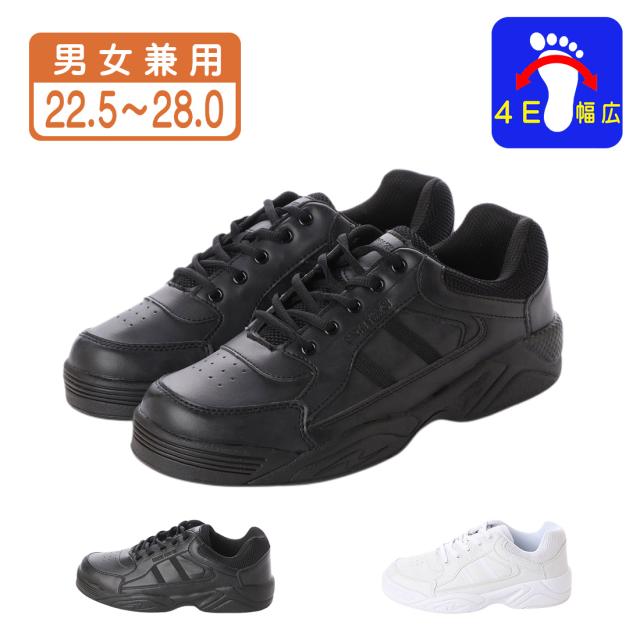 4E幅広設計でゆったりとした履き心地の男女兼用レースアップスニーカー。
