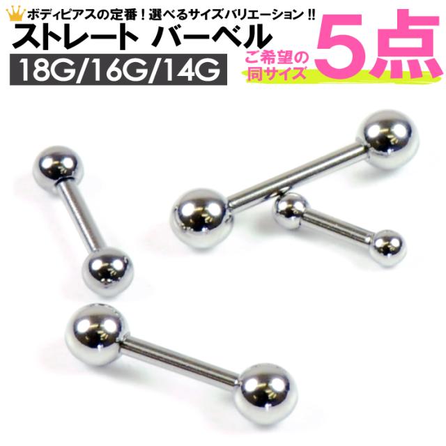 メール便 送料無料【福袋 5個セット】ショート バーベル 14G 16G 18G ストレート サージカルステンレス ボディピアス ボディーピアス 定番 ファーストピアス スタンダード┃