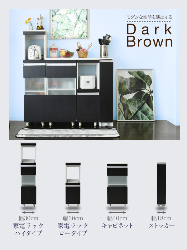 キッチン 隙間収納 ラック キャビネット 幅40 高さ90 奥行40 スリム 食器棚 4段 ロータイプ キャスター コンパクト 扉付き(代引不可)【送料無料】