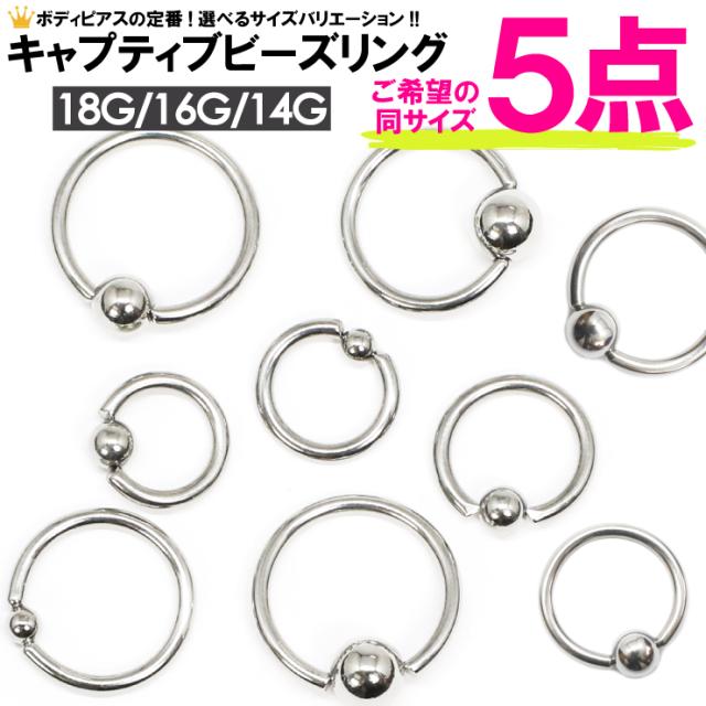メール便 送料無料【福袋 5個セット】キャプティブ ビーズ リング サージカルステンレス 18G 16G 14G ボディピアス サークルリング BCR CBR 1.6mm 1.2mm 1mm 定番┃