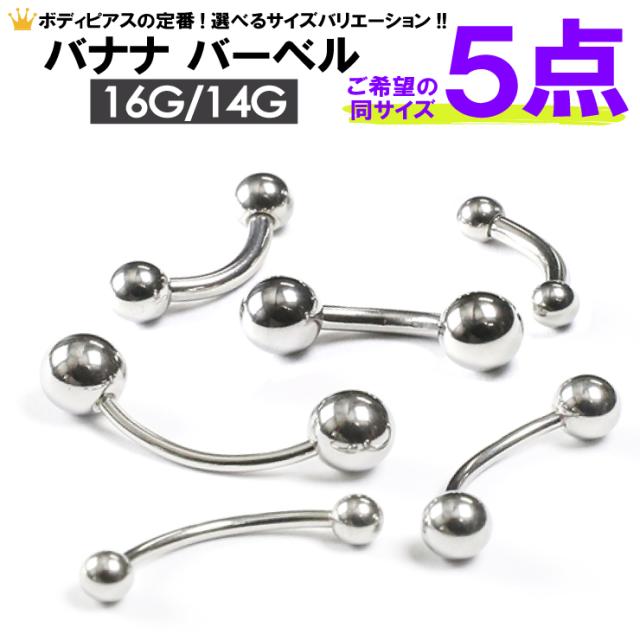 メール便 送料無料【福袋 5個セット】バナナ バーベル16GA・14GAサージカルステンレス【ボディピアス ボディーピアス サージカルステンレス316L(医療用) トラガス イヤーロブ インナーコンク】ゲリラ┃