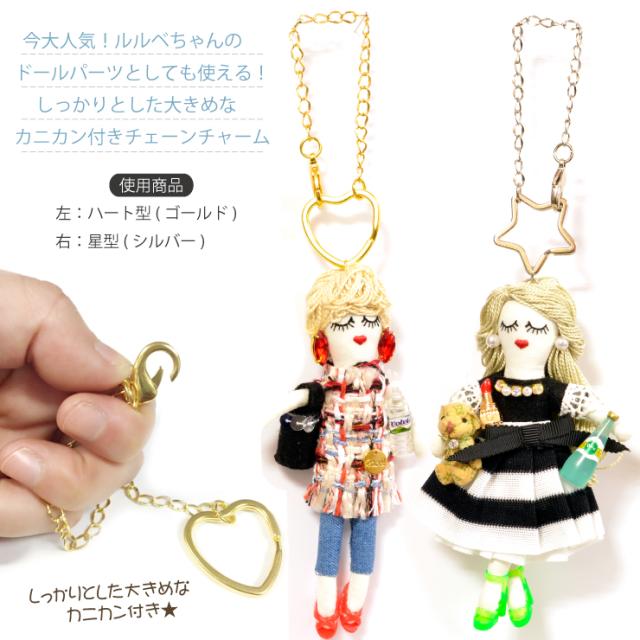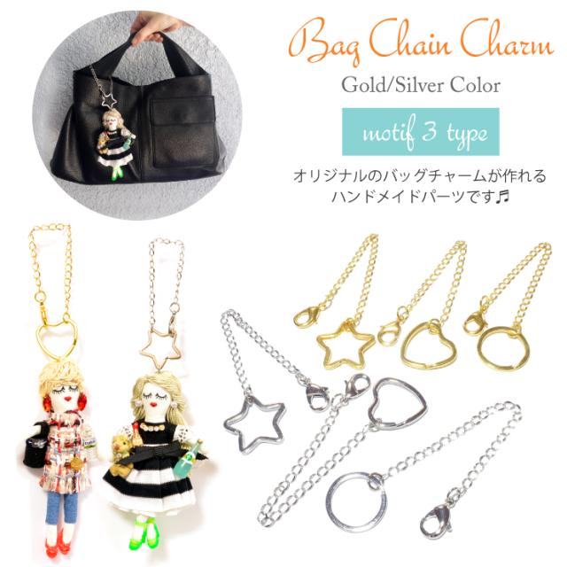 【メール便対応】ハンドメイド バッグチャーム チェーンチャーム ゴールドカラー シルバーカラー 星 ハート 丸【ハンドメイド パーツ 手作り アクセサリー 材料 バッグチャーム キーホルダー キーチェーン モチーフ tassel-etc┃