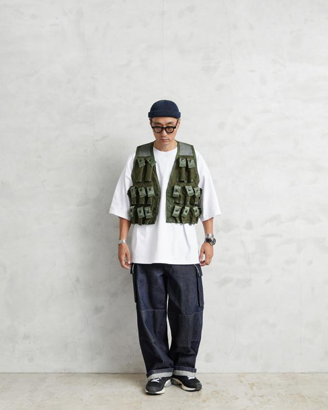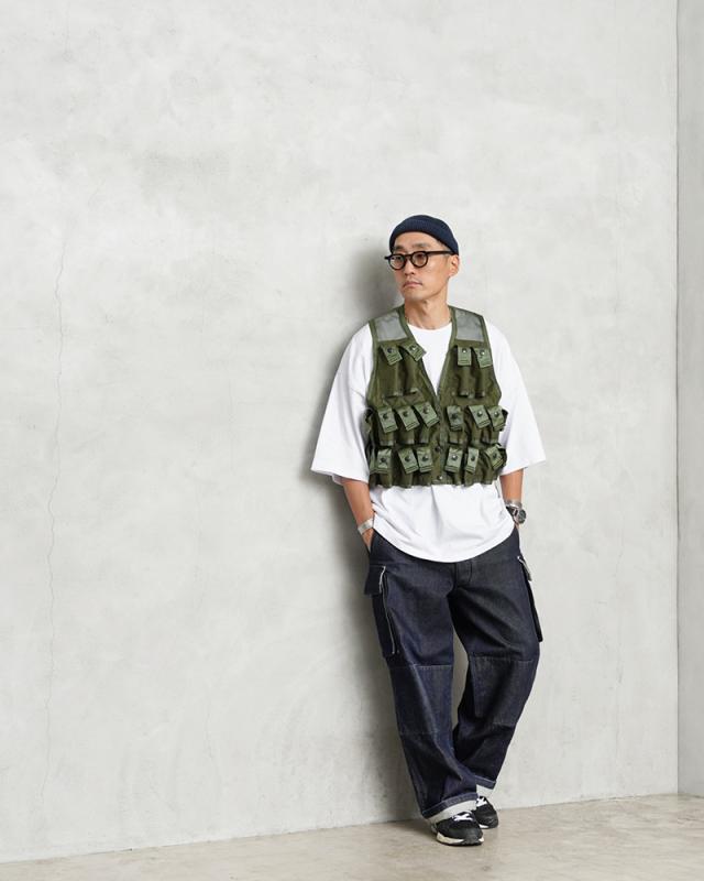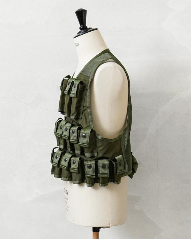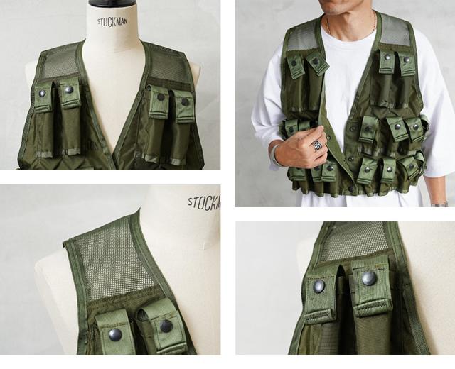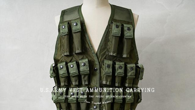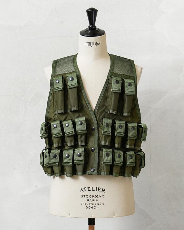 1961年から米陸軍に導入された「M79 グレネードランチャー」で使用されたグレネード弾運搬用のベストです。ベトナム戦争で米軍特殊部隊の軍曹がプロトタイプのベストを製作した事が始まりです。今回は1980年代製造のアイテムが多く入荷しており、24発収納できるポケットはスナップボタン開閉のフラップが付属しますが、底部分は縫製されない筒型のデザインです。胸部分の4つのポケットは比較的縦長で、40mmの信号弾などを収納する事ができ、その他20個のポケットは40mmグレネード弾を収納可能です。今後の入荷は無いかもしれない希少価値のあるアイテムですのでこの機会にぜひ!
