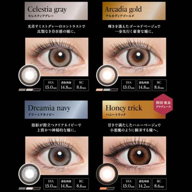 ★カラー名/レンズ直径(DIA)/着色外径/ベースカーブ(BC)/含水率★