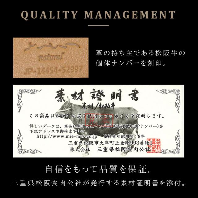 ■材質:表面/松阪レザー(松阪牛本牛革)、裏面/ヌメ革