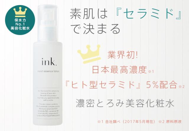 高濃度ヒト型セラミド原液5%配合 保水力No.1 無添加化粧水 ink. モイストエッセンスローション(美容化粧水・100ml)